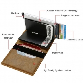 - Pouzdro vyrobené ze stínícího kovového materiálu zabraňující v komunikaci mezi čipem na kartě a okolím. Zabrání tak nechtěnému načtení karty a elektronické krádeži vašich peněz nebo dat pomocí přenosných čteček a skenerů.